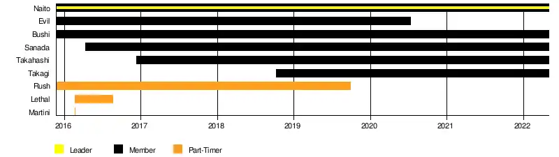 | Evil | November 21, 2015 | July 11, 2020 | Turned on the group after winning the New Japan Cup to join Bullet Club |