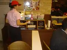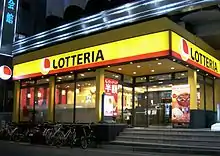 LOTTERIA Co., Ltd. (株式会社ロッテリア, Kabushiki-gaisha Rotteria) is a Japanese company that operates a chain of fast food restaurants in East Asia, having opened its first restaurant in Tokyo in September 1972. Taking its name from its parent company, Lotte Corporation, it currently has franchises in Japan, South Korea, Indonesia, Vietnam, Cambodia, Laos, and Myanmar.[1] The origin of the name is a combination of corporate names Lotte and Cafeteria.
