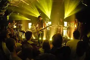 Lotus is known for concerts with a complex light setup [22][23] and varying set lists that employ frequent group improvisation. The concerts are often recorded by amateur engineers (tapers) and posted online for others to listen to.[24] Beginning with their January 27, 2008 show in Charleston, South Carolina, Lotus has sold their own soundboard recordings of certain shows on the site LiveDownloads.com; they are available in both MP3 and FLAC formats. The band has undertaken a number of tours and have performed at festivals including Jam on the River (Philadelphia, PA 2007,2008, 2014 and 2015), Wakarusa (KS 2005, 2006, 2007), Rothbury Music Festival in July 2008, 2009, 2013 and 2015, and All Good Music & Arts Festival 2010 and 2012[25] The band played a concert in New York City in September 2008 in which the new album Hammerstrike was played in full.[26] They also played at the Summer Camp Music Festival in Chillicothe, IL in 2008, 2009, 2011, 2012, 2014, 2016, and 2019. Other festivals include All Good Festival, Outside Lands, Bonnaroo, Camp Bisco, Fuji Rock,[27] and Ultra.