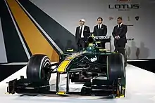 The Lotus T127 is a Formula One motor racing car designed and built by Lotus Racing for the 2010 season. It was driven by Jarno Trulli and Heikki Kovalainen and was unveiled in London, on 12 February 2010.[1] The car made its track début in the hands of test driver Fairuz Fauzy on 17 February 2010 at Circuito de Jerez.[2]