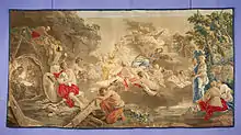 • Collection of mythological subjects, after six paintings, acquired by the administration royale for the manufacture d'Aubusson, 1759:[10]