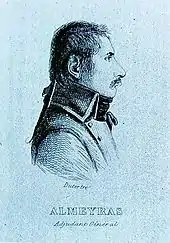 Baron Louis Alméras (15 March 1768 in Vienne, Isère – 7 January 1828 in Bordeaux) was a French general. He distinguished himself under Napoleon in Italy and Egypt, and was taken prisoner by the Russians in the retreat from Moscow. Returning to France after Napoleon's fall, he was made chevalier of St. Louis in 1814. In 1823, governor of Bordeaux, where, prematurely old through hard service and wound, he died. He was a commander of the Order of Saint Louis.