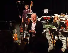 In 1969, Andriessen co-founded Studio voor Elektro-Instrumentale Muziek STEIM in Amsterdam.[13][14] In opposition to the classical orchestra, a structure seen as "hierarchical",[6] he also helped founding the instrumental groups Orkest de Volharding[2] and Hoketus, both of which performed compositions of the same names,[6][15] formed by classical, jazz and pop musicians.[6] He later became closely involved with the Schonberg and Asko ensembles and inspired the formation of the British ensemble Icebreaker.[16]