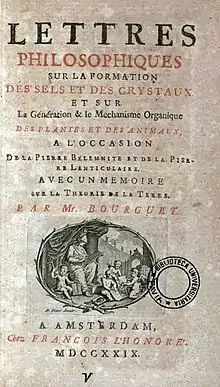 - Lettres philosophiques sur la formation des sels et des crystaux et sur la génération et le mechanisme organique des plantes et des animaux (in French). Amsterdam. François L'Honoré. 1729.