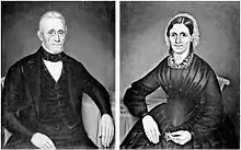 His wife was Sophie Marsac, also born in Detroit. Sophie was the daughter of René Marsac, an early and notable family from New France.[1][3] The Sophie de Marsac Campau Grand Rapids Chapter of the Daughters of the American Revolution was created in her memory and in so doing "perpetuated the name of a woman of rare grace and character who was held in high esteem by the early pioneers."[3]