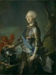 - Genealogie ascendante jusqu'au quatrieme degre inclusivement de tous les Rois et Princes de maisons souveraines de l'Europe actuellement vivans [Genealogy up to the fourth degree inclusive of all the Kings and Princes of sovereign houses of Europe currently living] (in French). Bourdeaux: Frederic Guillaume Birnstiel. 1768. p. 42.