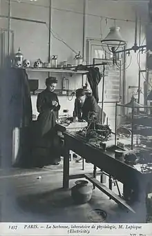 His wife, Marcelle Lapicque, was also a neurophysiologist.[4] Louis Lapicque "insisted on the importance of his wife as equal co-worker in all his research".[5]
