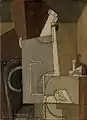 Violon, bouteilles de Marc et cartes (Violin, Marc bottles and cards). Signed and dated Marcoussis 1919. Gouache and watercolor over charcoal on paper, 45.8 x 24.5 cm