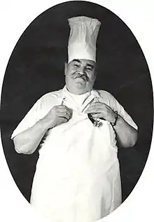 Louis Szathmary was born on June 2, 1919, on a train heading from Transylvania to Budapest as his parents fled the post World War I Hungarian–Romanian War.[2] He earned his master's degree in journalism and doctorate in psychology from the University of Budapest before being drafted into the Hungarian army to serve in World War II. Szathmary originally served as a psychologist to Hungarian Army men, before transferring positions to Army private, where he wrote manuals, including one for cooking.[3] Subsequently, he enrolled in a Hungarian chef's school and took an advanced course.[4]