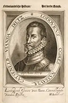 Louis of Nassau (Dutch: Lodewijk van Nassau, January 10, 1538 April 14, 1574) was the third son of William, Count of Nassau and Juliana of Stolberg, and the younger brother of Prince William of Orange Nassau.