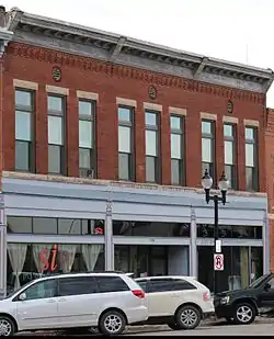 The Louisa Building is a historic building located in Mount Pleasant, Iowa, United States. Completed in 1901, this two story, brick structure features a transitional design between the Italianate, that had been popular here, and the Neoclassical that would replace it in popularity.[2] It has a triple storefront with three sets of three windows on the second floor. In place of hood molds, which were typical of the Italianate, each window has a heavy rusticated stone lintel. The metal cornice across the top of the facade is simpler in its decorative elements than earlier Italianate cornices.[2] This building replaced the Ambler Block, which had been destroyed in an 1882 fire. The lot had remained empty in the intervening years. The building was listed on the National Register of Historic Places in 1991.[1]