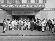 The following year, 1974, Hutchinson became the Historian and Director of Research at the Anacostia Community Museum (ACM). She helped write the mission for the museum,[1] acquired objects for the collection, strengthened relationships with the other Smithsonian Institution units and the local neighborhood. She researched various content for exhibitions, including The Anacostia Story: 1608-1903,[4] about the Anacostia community, The Frederick Douglass Years, Out of Africa: From West African Kingdoms to Colonization,[5] and Black Women: Achievements Against the Odds. Hutchinson also developed the museum’s oral history program and helped found the Anacostia Historical Society.[2]