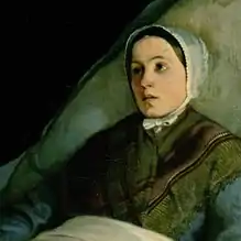 Lateau’s father died of smallpox ten weeks after her birth. Louise also contracted the disease and was saved with much difficulty.[2] At age 11, Lateau's mother put her out to work as a housemaid. Shortly thereafter, Lateau was brought back by her mother and had to work as a dressmaker. During a cholera epidemic in Bois-D’Haine in 1866, Lateau, then 16, nursed six of the epidemic victims. The following year, she became seriously ill herself; the disease lasted until 1868. On 15 April 1868, she was so ill that she received the last rites. Ten days later, she had her first experience of the stigmata.[3]