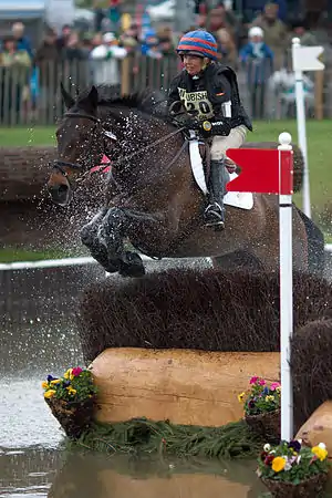 Louise Harwood is a British equestrian athlete competing in eventing at top three and four star events, and has won at the CCI *** Blair Castle event.[1][2][3] She started her Advanced career on two full brothers, bred by herself, Bit of a Barney and Partly Pickled. In recent years her main CCI**** horses are Mr Potts and Whitson, Louise also has several other horses in events at Intermediate and Novice level.[4] In 2014 Whitson was named British Eventing's Top Horse of 2014, winning the Wide Awake trophy for his breeders Roy and Annie Baker.[5] Louise finished 9th in the rankings for 2014, having placed 13th in a very competitive Etoiles de Pau CCI****, the last event of the season with Whitson.[6]