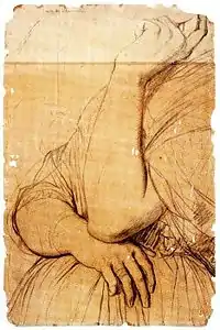 At around the same time, Ingres, by then 60 years old and convinced his reputation would be secured through larger-scale undertakings,[5] expressed dismay to a friend that "everyone wants" portraits. "There are six that I am refusing or trying to avoid because I can't bear them. Well, it was not to paint portraits that I returned to Paris."[6] Although it is unknown whether Louise's portrait was among those commissions Ingres hoped to avoid, preliminary sketches indicate that by summer 1842 he had taken up the task.[5][16] From the perspective of both painter and sitter, the process was not easy. Louise would spend months abroad at a time, and her sittings were interrupted by pregnancy.[6] At least 16 preparatory sketches exist, as well as an early trial portrait in oil,[5][17] and with dozens of drapery studies, some 60 extant Ingres works are thought to have informed the finished work.[18] Ingres significantly revised Louise's costume and refined her facial expression, adding extensive notes to at least one working draft: "indent the nostril", "chin sharper", "eyeballs smaller", "nose narrower".[6] He once told his pupil Amaury Duval that as difficult as portraiture was, women's portraits posed a particular challenge: "It can't be done", he said. "It's enough to make one weep."[5] Ingres spent the first six months of 1845 working intensely on the portrait, which was finished by summer of that year.[5][6]