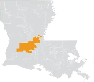 The district overlaps with Louisiana's 3rd, 4th, and 5th congressional districts, and with the 28th, 32nd, 38th, 40th, and 41st districts of the Louisiana House of Representatives.[4]