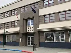 The Loussac–Sogn Building is a historic commercial building at 429 D Street in downtown Anchorage, Alaska. It is a three-story Moderne-style building, with storefronts on the ground floor and offices above, with its long side extending along 5th Avenue, and its main entrance, on D Street. The based on the building up to the storefront windows is finished in green tile, while most of the building is finished in concrete. The main entrance has a polished stone surround. Built in 1947, it is one of the oldest surviving Moderne structures in the city, and was the largest office building in the city at its completion. It was planned by Zachariah J. Loussac and Dr. Harold Sogn as a small building to house Dr. Sogn's medical practice, but grew in the design to its more substantial form.[2]