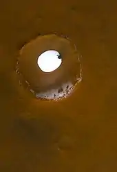 Louth has been photographed by Mars-orbiting satellites, including Viking,[3] Mars Express,[6] and the Mars Reconnaissance Orbiter (MRO).[25] Both Mars Express and the MRO contributed data that was significant to understanding the surface dynamics of the crater.[26][5]
