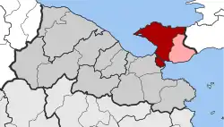 Loutraki-Perachora (Greek: Λουτράκι-Περαχώρα) is a former municipality in Corinthia, Peloponnese, Greece. Since the 2011 local governmental reform it is part of the municipality Loutraki-Perachora-Agioi Theodoroi, of which it is a municipal unit.[2] The municipal unit has an area of 196.870 km2.[3]
