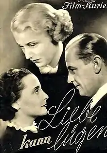 Love Can Lie (German: Liebe kann lügen) is a 1937 German romance film directed by Heinz Helbig and starring Karl Ludwig Diehl, Dorothea Wieck and Jutta Freybe.[1]