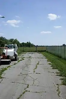 In early 1952, when it became apparent that the site would likely be developed for construction, Hooker ceased use of Love Canal as a dumpsite.[16] During its 10-year lifespan, the landfill served as the dumping site of 21,800 short tons (19,800 t) of chemicals, mostly composed of products such as "caustics, alkalines, fatty acid and chlorinated hydrocarbons resulting from the manufacturing of dyes, perfumes, and solvents for rubber and synthetic resins".[17][18] These chemicals were buried at a depth of twenty to twenty-five feet (6 to 7.5 m).[11] Upon its closure, the canal was covered with a clay seal to prevent leakage. Over time, vegetation settled and began to grow atop the dump site.