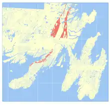 ![]() Occurrence of the Love Cove Group in southeastern Newfoundland | |