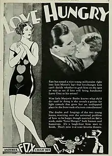 Love Hungry is a 1928 American comedy film directed by Victor Heerman and written by Randall Faye and Frances Agnew. The film stars Lois Moran, Lawrence Gray, Marjorie Beebe, Edythe Chapman, James Neill and John Patrick. The film was released on April 8, 1928, by Fox Film Corporation.[1][2][3]