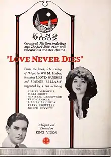 Love Never Dies is a 1921 American silent drama film directed by King Vidor.[1] Prints of the film survive in several film archives.[2]