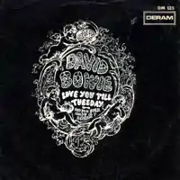 The single appeared in America on 28 August and likewise received critical appraisal.[11] Cash Box praised the "orchestrations packed with zest, a delivery with all the punch of an on-stage pub performance, and some wild lyrics."[12] After its release, Bowie recorded other tracks for release as singles, all of which were rejected by the label, leading to his departure in May 1968.[7] As a result, "Love You till Tuesday" was Bowie's last release for Deram.[1]
