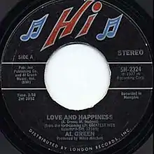 "Love and Happiness" is a 1972 song by Al Green from his album I'm Still in Love with You. Green co-wrote the song with Teenie Hodges. It was released as a single in the United Kingdom on London Records in 1973 and in the United States on Hi Records in 1977. It has been covered by Etta James, Al Jarreau, and many other performers.