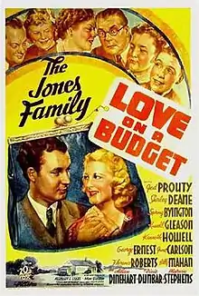 Love on a Budget is a 1938 American comedy film directed by Herbert I. Leeds and starring Jed Prouty, Shirley Deane and Spring Byington. It was part of Twentieth Century Fox's Jones Family series of films. The Jones' eldest daughter Bonnie and her husband Herbert Thompson have money troubles, which their uncle attempts to help out with.