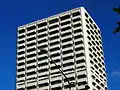 Accommodation of the building consists of a single level basement, ground floor foyer, two ground floor tenancies, while the rest of the building mainly consists of office space.[1] A mezzanine level is also found in the building.[1] Upper levels of the building feature a central service core which accommodates female and male amenities, tea rooms, and multiple lifts and lift lobbies.[1] The Woden Town Centre is notorious for the wind tunnel caused by the Lovett Tower.[14]