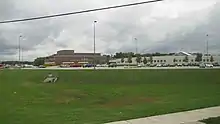 A notable rivalry has existed primarily between the football teams from Crown Point High School and Lowell High School since approximately 1903.[3] Each team competes for "The Old Leather Helmet Trophy",[4][5] a piece of World War I era leather headgear that is mounted to a wooden platform.[6] This trophy symbolizes the long history of the schools rivalry on the football field, though the rivalry extends into other athletic arenas.[7] Crown Point High School and Lowell High School are not in the same athletic conference,[8] they choose to compete once during the football season to continue the long competitive history.
