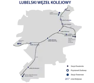 The station serves trains running on the four lines radiating from Lublin: north-east to Warsaw, north to Łuków, east to Chełm and the border with Ukraine, and south to Przeworsk. It is one of the busiest stations in eastern Poland, with over 50 train departures on a typical day.