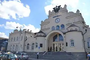 Following the recreation of Poland in 1918, the station building was reconstructed in the 1920s to give it a more Polish style,[2] as the original building looked like a typical station of the Russian Empire.[3] In recent years the station was completely refurbished. Because of this, it is now considered one of the best railway stations in Poland, according to Gazeta Wyborcza which gave it second place in the ranking of 23 most significant Polish railway stations.[4]
