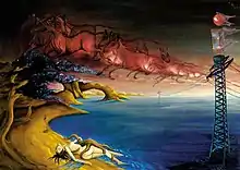 He has created his specific vocabulary in paintings.[13] As far back as the 1970s, one can find a road, which is mostly bordered by the arches of bridges and which rises up, in his paintings. He calls it "the heavenly highway".[39] The oil painting The Heavenly Highway of Aunt Fränzi (1974–75), which is today part of Neues Stadtmuseum's collection, is an example of early use of this symbol.[39]