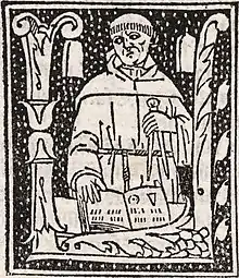 Fra Luca Bartolomeo de Pacioli (sometimes Paccioli or Paciolo; c. 1447 – 19 June 1517)[3] was an Italian mathematician, Franciscan friar, collaborator with Leonardo da Vinci, and an early contributor to the field now known as accounting. He is referred to as "The Father of Accounting and Bookkeeping" in Europe and he was the first person to publish a work on the double-entry system of book-keeping on the continent.[4][lower-alpha 1] He was also called Luca di Borgo after his birthplace, Borgo Sansepolcro, Tuscany.
