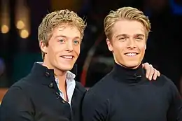 Lucas & Arthur Jussen are a Dutch piano duo. Lucas Jussen (born 27 February 1993 in Hilversum, in the Netherlands) and Arthur Jussen (born 28 September 1996, also in Hilversum) are brothers who have been performing in public since early childhood, often together as a piano duo.[1] They come from a musical family: their mother Christianne van Gelder teaches the flute, while their father Paul Jussen is a timpanist in the Dutch Radio Philharmonic Orchestra in Hilversum and a percussionist in the Ensemble Da Capo. The brothers are students of piano teacher Jan Wijn. They lived and studied with Maria João Pires and have played with pianists Ricardo Castro and Lang Lang.