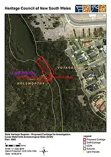 The fairly remote location was referred to as Liverpool, in reference to the nearest township. The area was difficult to access overland as there was no bridge across the Georges River to this southern settlement until the building of the Liverpool Weir in 1836. Despite this, the flat and fertile area known today as Holsworthy was becoming recognised by remote farmers for its agricultural potential, and Mary and John joined early European settlers including their neighbour, Mary's brother, Thomas Rowley Jnr in the area.[1]