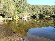 - Remnant cement which can be used to trace the line of the mill dam.[1]