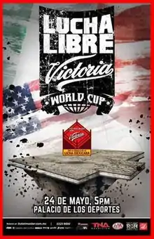 The event featured eight professional wrestling matches, in which some wrestlers may have been involved in pre-existing scripted feuds or storylines and others were matched up with no back story outside of the tournament. Wrestlers themselves portrayed either villains (referred to as "Rudos" in Mexico) or fan favorites ("Tecnicos" in Mexico) as they competed in matches with pre-determined outcomes. AAA originally announced that together with Grupo Modelo, specifically "Victorian Beer", to arrange "Copa Victoria", a trios tournament with teams from around the world competing in a one night tournament. At the time of the announcement AAA revealed that the first team to represent AAA would be the team of Alberto el Patron (team captain), Myzteziz and Rey Mysterio Jr.[1] In late April it was announced that former AAA regular Kenzo Suzuki would captain a team representing All Japan Pro Wrestling (AJPW) that would also include Tiger Mask III and Masamune.[3] In addition former holder of the AAA World Tag Team Championship, Taiji Ishimori, would captain a team representing Pro Wrestling Noah consisting of himself, Yoshihiro Takayama and Atsushi Kotoge.[3] It was also announced that Matt Hardy would captain the team representing the U.S. based Total Nonstop Action and Lucha Underground. The other two team members would be Mr. Anderson (TNA) and Johnny Mundo (LU).[4] AAA also invited their rival promotion Consejo Mundial de Lucha Libre (CMLL) to take part in the tournament, but they declined the offer.[5] AAA announced that they would hold qualifiers to determine the second team representing AAA, with the winners of three qualifying matches earning the right to represent AAA. Fênix, Electroshock and El Hijo del Fantasma; La Parka, El Texano Jr. and Cibernético took place on April 30 with Psycho Clown, El Zorro and Averno to took place May 2.[6] Winning their respective matches, El Hijo del Fantasma, El Texano Jr. Psycho Clown became members of the second AAA team.[7][8] It has also been revealed that Blue Demon Jr., Dr. Wagner Jr. and El Solar would represent Mexico. The team called "The Rest of the World" would be represented by the Scottish Drew Galloway, Puerto Rican El Mesías and Angélico from South Africa.[4]