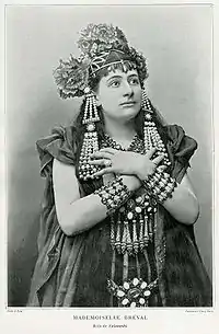 Bréval became a principal soprano at the Paris Opéra and remained there until 1919.[3] Her roles with the company included several world premières including Augusta Holmès's La Montagne Noire (1895), Camille Erlanger's Le fils de l' étoile (1904), Dukas’ Ariane et Barbe-bleue (1907), Massenet's Bacchus (1909), and the title roles in Massenet's Ariane (1906) and Henry Février’s Monna Vanna (1909). She also was Kundry in France's first performance of Wagner's Parsifal (1914). Her other notable roles at the Paris Opera included Brünnhilde in Richard Wagner's Die Walküre (1893), Venus in Wagner's Tannhäuser (1895), Marguerite in Hector Berlioz's La damnation de Faust (1897), and the title role in Rameau's Hippolyte et Aricie (1908).[1]