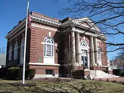 The Lucius Clapp Memorial is a historic library building in Stoughton, Massachusetts. The single story masonry Renaissance Revival structure was built in 1903. It was Stoughton's first purpose-built library building, and was built on the site of its first schoolhouse. The building was designed by Walter Atherton and given to the town by Lucius Clapp, a local schoolteacher and businessman.[2] It now houses the Stoughton Historical Society.
