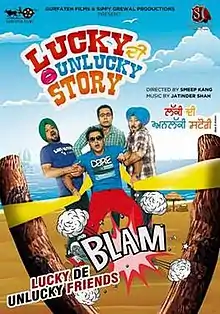 Lucky Di Unlucky Story is a 2013 Punjabi comedy film directed by Smeep Kang, and featuring Gippy Grewal, Jaswinder Bhalla, Gurpreet Ghuggi and Binnu Dhillon in lead roles; the group earlier came together for 2012 Punjabi comedy Carry On Jatta. The story is based on the lives of ladiesman Lucky; and his three married friends and how they enchance minor trouble. The film released on 26 April 2013 and became an instant blockbuster at the Indian box office apparently. The core storyline was loosely based on the 2002 Tamil movie Panchathantiram which itself was inspired by the 1998 movie Very Bad Things.[1]