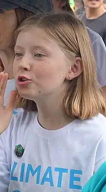Lucy Gray is a school student at Ao Tawhiti school in Christchurch[5] and was previously at Cashmere High School.[6] She is a national chairperson of School Strike 4 Climate activities, including marches for school students to join.[7][8] Three took place in 2019, on 15 March (which was abandoned for safety reasons due to the Christchurch mosque shootings), 24 May,[1] and again on 27 September.[9][10] A fourth, indoor protest took place in May 2020, while New Zealand was in lockdown due to the COVID-19 pandemic.[11]