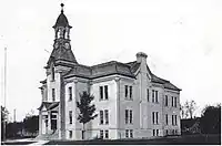 The Ludington Public Library started with the Ludington Library Association on April 9, 1872.[2][3] A meeting was announced for those that were interested in organizing a library. At the time there was interest in a public reading room with an aim to improve mental health. The meeting was held at Ludington Hall over the Pere Marquette Lumber Company "Big Store" (later bought by Pierce Manufacturing) at the southwest corner of Main Street (now Gaylord Avenue) and Ludington Avenue to establish a permanent organization of a library association.[2] Articles of association were filed on April 12, 1872, and it was brought up at an official city meeting on the evening of April 24, 1872 at the same location.[2][4] The organization was perfected and officers were elected in 1872 and 1874.[2][4]