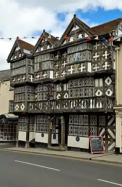 Ludlow has nearly 500 listed buildings,[4] including examples of medieval and Tudor-style half-timbered buildings. The town was described by Sir John Betjeman as "probably the loveliest town in England".[5]