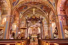 The Neo-Romanesque parish church of the Sacred Heart built in 1893/94 to plans by Johann Baptist Schott. It has a unique Neo-Romanesque décor by Munich artist, Franz Xaver Hofstötter (1871–1913). An unusual feature is the rich painting of the interior rooms.