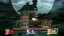 The mansion in the game has reappeared in other Mario games, usually acting as Luigi's home stage. It appeared in Mario Kart: Double Dash!!, Mario Kart DS, Mario Kart 7, Mario Power Tennis, Mario Super Sluggers, Mario Hoops 3-on-3, Mario Sports Mix, Super Smash Bros. Brawl, Super Smash Bros. for Wii U, and Super Smash Bros. Ultimate. The Wii U launch title Nintendo Land features Luigi's Ghost Mansion, a multiplayer minigame based on Luigi's Mansion. In this minigame, four players controlling Miis dressed up as Mario, Luigi, Wario and Waluigi have to drain the energy of a ghost, while the GamePad player, controlling the ghost, must make all the other players faint before time runs out.[72]
