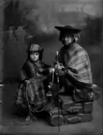 Notably, Gismondi also took a large quantity of photographs of indigenous peoples, being one of the few photographers interested in portraying them at the time.[6] His representation of groups like the cholas, highlighting their extravagant outfits and representing them in a dignified manor, came at a time when such figures represented a distinct lower class in Bolivian society. Of particular note among these is Men pulling a rope, which features three indigenous men performing the photograph's namesake action, conveying the concept of a strong indigenous race. These photographs became a popular item on post cards and were a notable advance for the indigenist movement.[7][8]